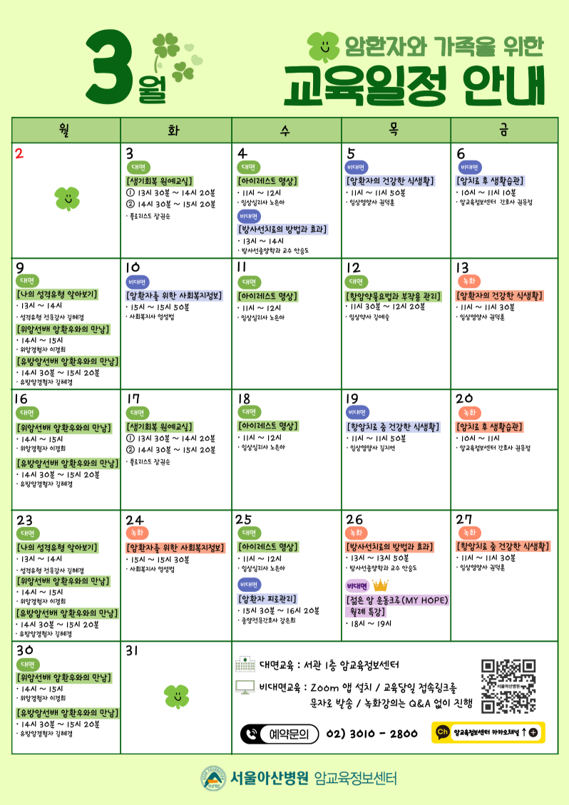 2026년 3월 암환자와 가족을 위한 교육 안내