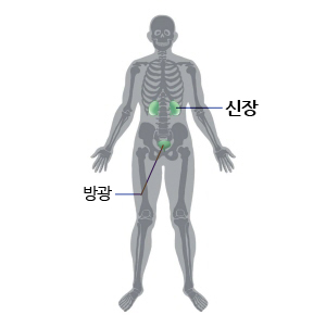 횡격막의 아래쪽, 배의 뒤에 위치하며, 우리 몸의 노폐물을 제거해주고 체내 수분과 염분의 양, 전해질 및 산-염기 균형을 조절해주는 역할을 합니다.