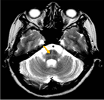 [다계통위축 환자의 뇌자기공명영상에서 확인되는 십자무늬빵 징후]